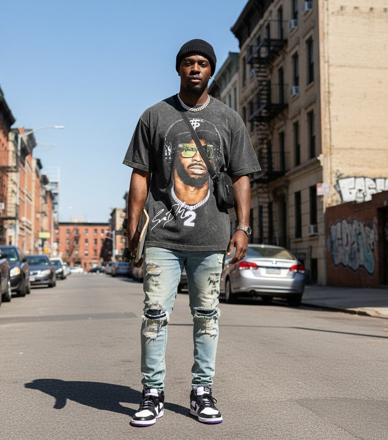 This t-shirt is a relaxed fit; true to size. We recommend sizing up if you prefer an oversized fit.